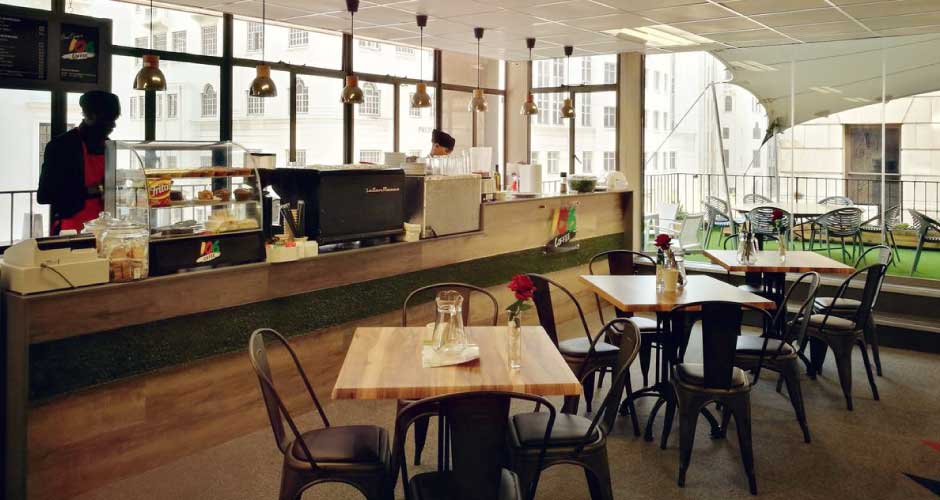 Guests can enjoy a meal at the open terrace of the BaseCamp Restaurant or grab a cup of coffee from the on-site coffee shop.