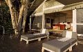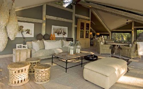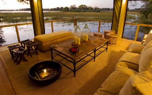 An imaginative use of canvas and pole has created a unique style of tent which has been called Afro-Bedouin: high, wide and airy, blending in flawlessly with the natural surroundings. Each of the five en-suite accommodation units has its own distinctive furnishings and fittings, many of them antique, imparting an air of opulence amid the bush setting. Each tent has its own private elevated teak deck sculpted around one of the lofty sycomore figs or jackalberry trees with vistas the likes of which only the Okavango Delta can boast. Well-lit pathways link the Abu Camp tents with the main lounge and dining area. High vaulted tenting opens out onto a tiered teak deck surrounding a giant termite mound, one of the characteristic sights of the Okavango Delta. The lounge is replete with comfortable antique furnishings and boasts an absorbing library of field guides and illustrated volumes on the wildlife surrounding the camp, as well as throughout the Okavango Delta. A well-stocked bar provides drinks and cocktails for post-safari sundowners around a camp fire while most of the meals are taken al fresco on the deck. Nearby a secluded plunge pool enables guests to cool off and relax. With its shady trees and views overlooking the tranquil lagoon, Abu Camp is a haven of peace and seclusion.Directions To Abu Camp