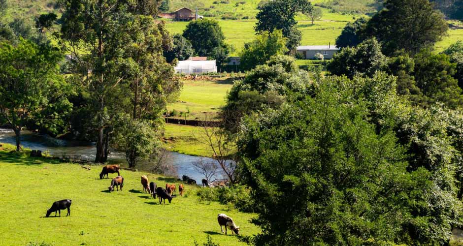 You can explore the farm during your stay while taking a 4km walk. Pass through indigenous forest to see the enormous 500-year-old Yellowwood tree, walk along the Mpofana River, see the newly planted kiwi fields and Nguni cattle. Take strolls through the gorgeous rose gardens on the farm and settle down at a grassy picnic spot next to the crystal clear river which flows strongly through the farm. Take a dip or try your luck and catch yellow tail or trout – strictly catch and release.