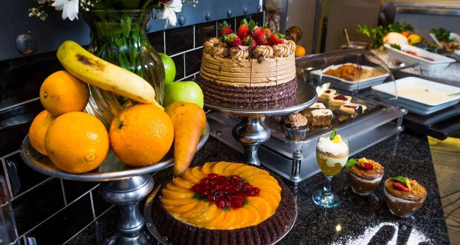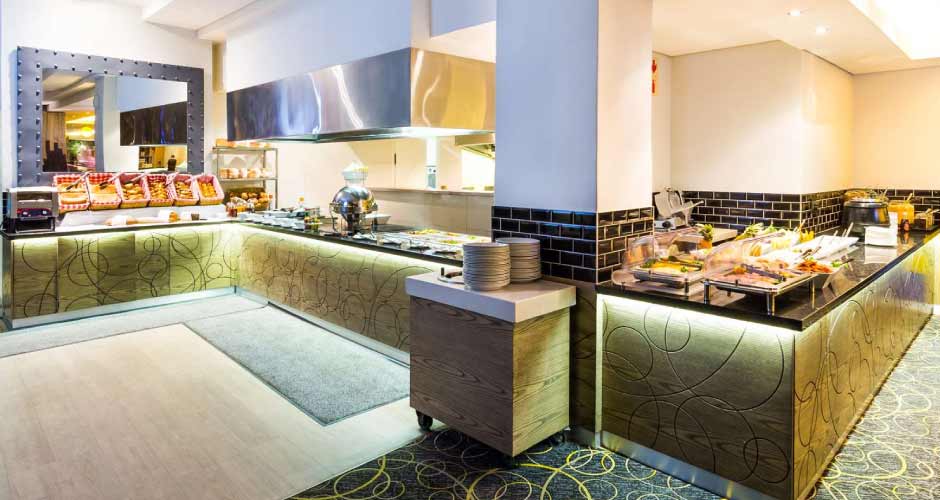Breakfast at the Best Western Fountains includes international as well as cooked South-African choices. The buffet restaurant has an adjacent terrace and also serves a variety of local wines.