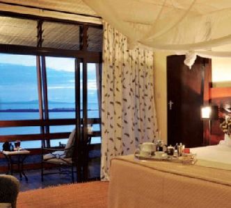 Bumi has 20 front-facing rooms (10 Premium and 10 Standard), all with bath/shower, overhead fan, air conditioning, mini-bar, tea-coffee station and balcony or veranda. An exclusive four-suite villa may also on occasion be available by special application if more rooms are required. All rooms have a view over the lake but the 10 Premiums are sublime with awe-inspiring sunrise-and-sunset vistas over the lake, historic Starvation Island and game-rich shoreline. Larger groups may relish the adventure of additional "elephant territory" accommodation aboard luxury houseboats, just a two-minute transfer from the lodge.Directions To Bumi Hills Safari Lodge
