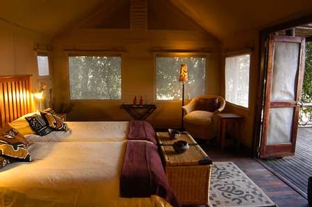 Chiefs Camp Activities Fly-In, Wildlife Game Drives, Safari Walking, Canoeing, Fishing, Photography, Birding, Luxury Tented Camp, Swimming Pool. Chiefs Camp Attractions Chief's Camp lies 19 km from Mombo Camp, an area renowned for its abundance of wildlife - ensuring plenty of excellent game-viewing opportunities. The area is particularly well known for its large concentrations of elephant, hippo, buffalo, lion, leopard, cheetah and Painted Wild Dog, to name but a few. The Chief's Island region is unique in that large numbers of plains-game and predators are found here throughout the year. One of Africa's most untamed and unexplored areas, this seasonal delta undergoes constant change. Lagoons, winding waterways, reedbeds, and mopani and acacia woodlands make up this rich landscape. Chiefs Camp Facilities Chief's Camp will offer the ultimate in lodge luxury, providing all the necessary modern conveniences whilst maintaining an air of subtle and understated elegance. Twelve twin-accommodation units are offered as well as a spacious public and dining area and a swimming pool, all of which have been designed to make the most of the natural landscape. With the expertise of skilled interior designer, Caline Williams-wynn, the décor features earthy tones and natural and textured fibres, resulting in a contemporary African feel. The lodge has been skilfully integrated into the landscape and promises an immersive African experience - so much so that guests can often view game without even leaving camp ! The camp's main lounge area houses a reference library and binoculars are available for guests who may have forgotten theirs. Game-viewing platforms in the camp complete the diverse viewing options.Chief s Camp - Botswana Moremi Accommodation