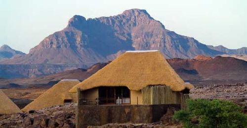 Situated a short distance inland from the stark Skeleton Coast and just north of the true Namib Desert, Doro Nawas Camp in the Doro !Nawas Conservancy exists within one of the driest, most desolate regions in all of Africa. In this arid environment the ceaseless processes of life revolve around harnessing the near non-existent water in the most economical way possible. Desert adaptation is the miracle of the surprisingly rich diversity of fauna and flora surviving here. The landscape ranges from boulder-strewn floodplains, canyons and dry riverbeds to curious rock formations surrounded by sand dunes. Namibia's geological formations are amongst the oldest in the world. The Petrified Forest is a collection of 280 million-year-old fossilised tree trunks. Burnt Mountain and Organ Pipes, a mass of perpendicular dolerite pillars, are also vast and ancient. The principle source of water in the Doro !Nawas Conservancy comes from the famous Namibian early morning mists generated by the icy waters of the Atlantic Ocean colliding with the hot desert air of the Skeleton Coast. This daily cycle of airborne moisture rolls inland along the various depressions and canyons formed by ancient rivers. As the dew settles it is eagerly harvested by plants, animals and insects before the burning Namibian sun climbs into the sky. Doro Nawas Camp rests on a sparse, rocky knoll in the breathtaking Aba-Huab River Valley. In times of good rainfall this landscape is transformed into a carpet of golden grass and beautiful desert flowers. Obviously this scrub landscape cannot support vast, concentrated herds of wildlife, but nevertheless boasts a varied and surprising assortment of desert-adapted species around Doro Nawas Camp. The Doro !Nawas Conservancy supports healthy populations of the unique desert-adapted elephant, a special highlight here. Other game species complementing this landscape include gemsbok, kudu, springbok, steenbok and occasionally the rare desert-adapted black rhino. Carnivores include brown hyaena, bat-eared fox and black-backed jackal. Birding is excellent at Doro Nawas Camp. Raptors include the Secretarybird, Booted Eagle, Black-Chested Snake-Eagle, Martial Eagle, Lappet-faced Vulture and Pale Chanting Goshawk. The endemic Benguela Long-billed Lark is common on the rocky slopes here - its plaintive whistling call an evocative sound. Other endemics include Rüpell's Korhaan, Monteiro's Hornbill and Bokmakierie. During heavy rainy seasons, seedeaters like Red-billed Quelea are in abundance at Twyfelfontein 'Dam' and there is always the odd Gabar Goshawk looking for a tasty meal here.Doro Nawas Camp Namibia Accommodation