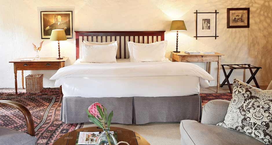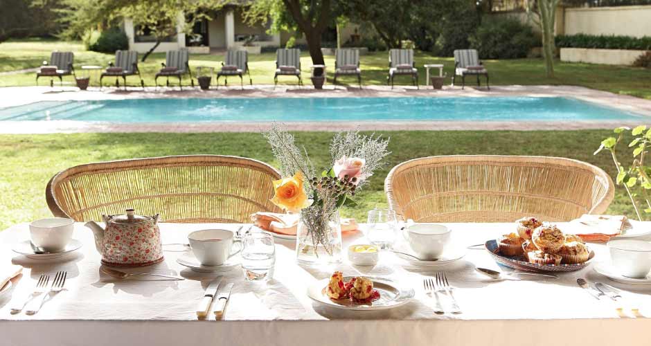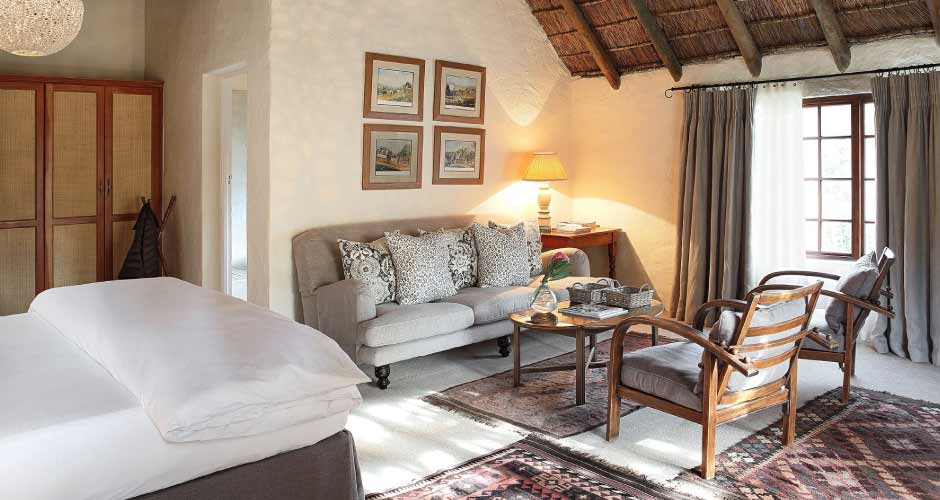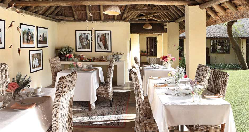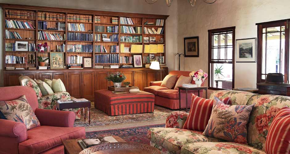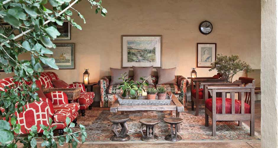 The wide verandas (filled with comfortable sofas) forming a series of courtyards are a defining feature, whilst the décor of Elephant House evokes Colonial and African images and is furnished with the owners private collection of antiques, Persian rugs and Africana art.