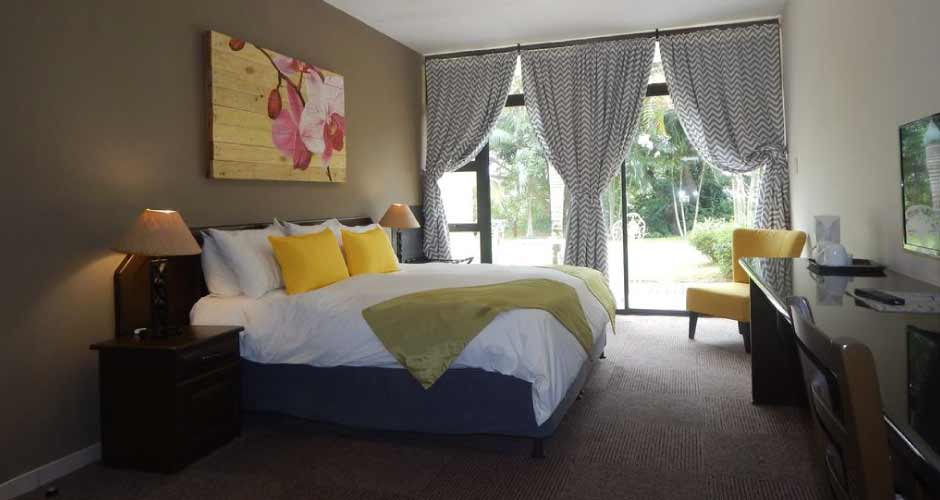 The hotel has 2 levels and each air-conditioned room comes either with balcony or a patio and offers views of the St Lucia Estuary. The rooms are fitted with a safety deposit box, tea-and-coffee making facilities, satellite TV and en-suite bathroom with shower and complimentary toiletries.