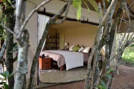 Encounter Mara is hidden away in a forest on the banks of the Olmorijio River and each living area allows views over the surrounding plains and valley. The camp has been built with minimal impact to the surrounding environment and the canvas structures melt into the bush. Giraffe and zebra are daily seen drifting past the camp, along with a host of other plainsgame and colourful birdlife. The salt lick directly in front of the camp is a popular source of natural minerals for a variety of animals and guests may often feel the urge to simply remain in the comfort of the camp and watch the unfolding of events with a cold drink in hand. No pathways cross in front of guest tents and private verandas and hammocks give ample opportunity to soak in the ambiance in complete and blissful privacy.