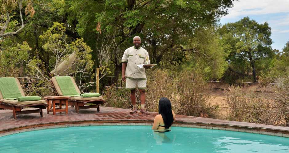 Each luxury safari tents in Kruger Park has a romantic slipper bath, out door shower overlooking the Ngwenyeni dam and a private verandah. Hamilton's Tented Camp attractions, facilities and services include game drives, sightseeing, bush walks, bird watching in the hide overlooking the waterhole, swimming pool and butler service for the luxury safari tents in Kruger Park.