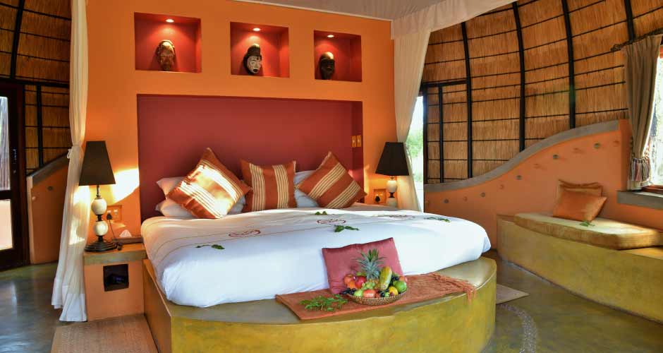 Six luxury air conditioned 'bee-hive' suites, cylindrical in structure with earth coloured walls and a tapering thatched reed roof boast king size beds, en-suite bathrooms, outdoor showers and private game viewing decks. All fabrics, décor and objet d’art are sourced from the local Tsonga community and stand tribal proud.Directions To Hoyo Hoyo Safari Lodge