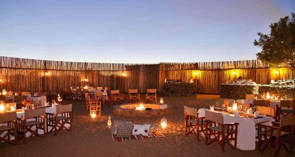 The lodge boasts 12 luxurious rooms each with own private plunge pool overlooking a riverbed. Suites are decorated in neutral colours with accents of African tradition, from the wall lamps to the comfortable textured pillows. Large French doors run the length of the room to let the beautiful outside in, an expansive deck overlooks the river or grasslands with the pool to complete your experience.