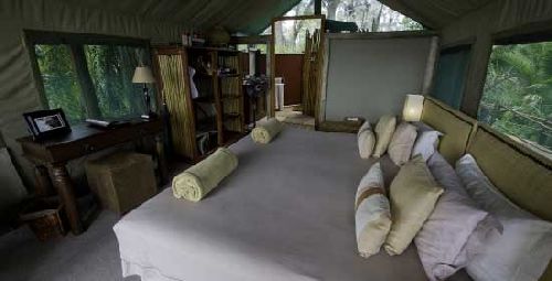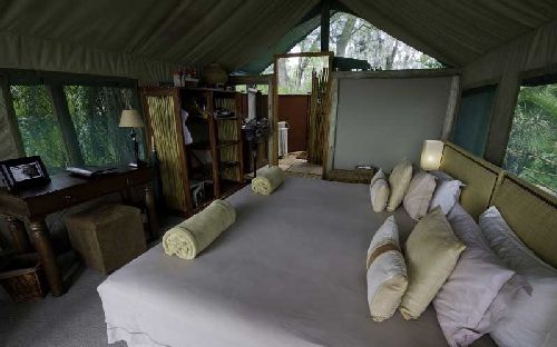 Jacana Camp is located in the Jao Concession: 60,000 hectares of reserve against the western boundary of the Moremi Game Reserve in the north-western area of the Okavango Delta, Botswana, below the Panhandle. The Okavango Delta rests between shallow fault lines at the end of the Great African Rift Valley. Deserts are low on annual rainfall and the Okavango Delta is no exception, but the annual floodwaters from the moist African highlands over 1000 km to the north create a unique wetland that supports and sustains a huge diversity of wildlife. Lying in the very heart of the Okavango Delta, the Jao Concession embodies all the magic and mystique of the region. Narrow water channels cut their way through the papyrus and reed beds in the permanent delta to the north and east of the concession, providing the perfect environment for the elusive sitatunga and the rare Pel's Fishing-Owl. Beautiful lush palm islands, like the one on which Jacana Camp is built, dot the water, begging to be explored. In the central region of the Jao Concession, vast open floodplains provide some of the most stunning scenery of the region, with beautiful islands fringed with riverine forests. Further west, the area gets progressively dryer and Hunda Island (which is the tip of a large 'sand tongue') is the largest area of dry land in the vicinity during the flood season. Hunda Island has sandveld vegetation supporting many species of nutritious acacia and grewia shrubs which provide excellent browsing. The true wetland areas of the Okavango Delta are best known for their birdlife. The largest concentrations of endangered Wattled Crane are found in this area and Slaty Egrets, Rosy-throated Longclaws and African Skimmer are some of the specials that can be seen. Hallowed species such as Pel's Fishing-Owl and Slaty Egret are found alongside more conspicuous and commonly seen Coppery-tailed Coucal, Pygmy Goose. The specialised African Skimmer (from which Wilderness Safaris takes its logo) may be seen on the larger lagoons and channels. Jacana Camp is set in the most densely populated wetland area for sitatunga antelope and red lechwe, and hippo and crocodile are regularly sighted. In the dry season lechwe, tsessebe, elephant, wildebeest and zebra are prevalent, with lion, cheetah and leopard often sighted. The many lion prides in this area have been extensively studied in recent years, thereby building up a more intimate knowledge of their behaviorJakana Camp - Botswana Okavango Delta Accommodation