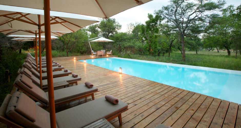 Other guest amenities include a stylish guest lounge with a flat-screen TV, an open-sided dining area and bar, and an outdoor pool with a deck. The perfect spot to relax, sip on a refreshing beverage and play a one-sided game of hide and seek with the local wildlife. The traditional outdoor boma lets guests dine under the stars. Two daily game drives are included, along with transfers to Hoedspruit Airport.