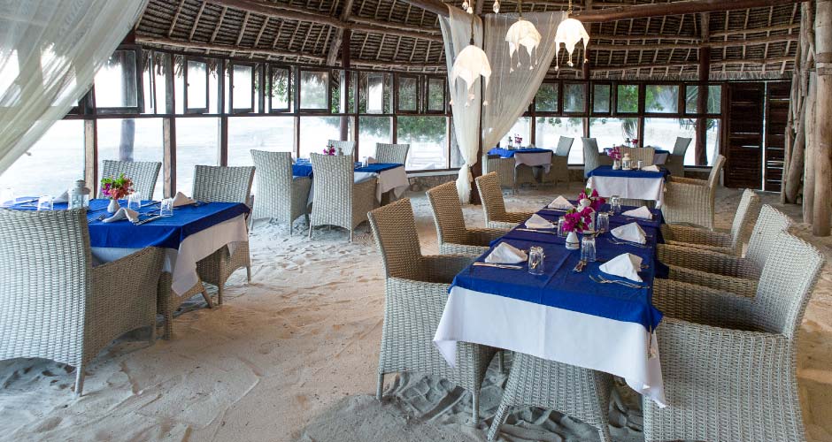 The highly recommend cuisine at Karafuu includes theme evenings and different venues and you can even have a romantic dinner right on the beach.