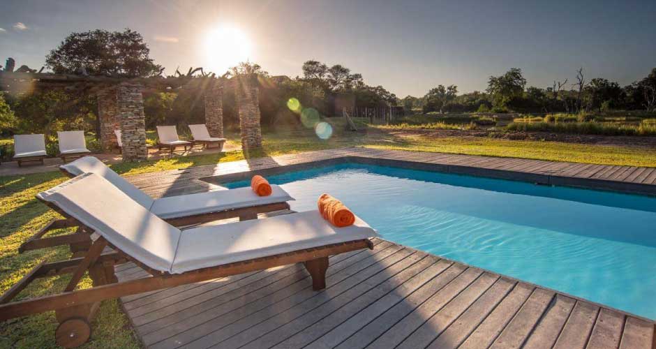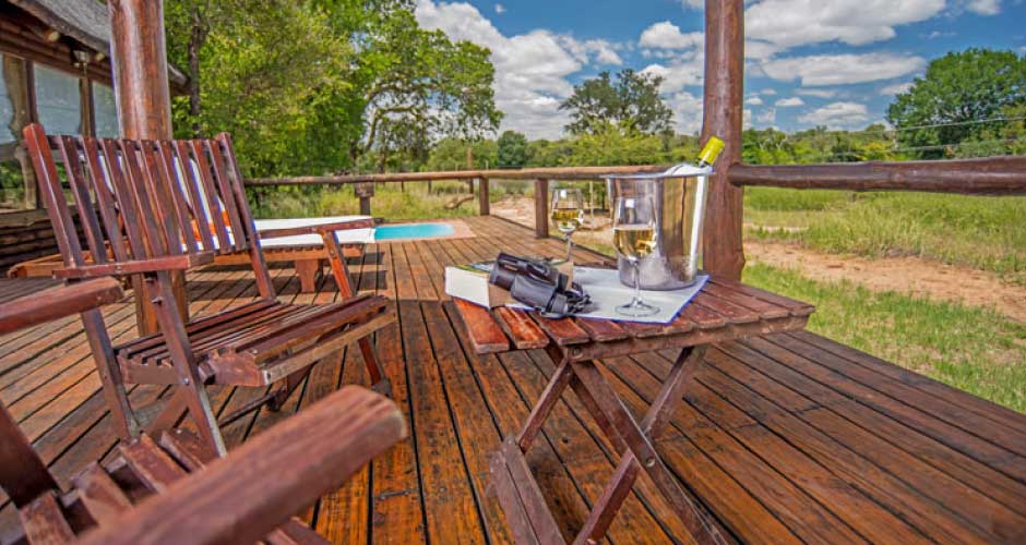 To compliment your meal, choose from our extensive selection of top South African and imported beers and wine, together with a variety of spirits and soft drinks.Spend the afternoon relaxing beside the pool or watching the game from your private deck before being whisked away on a late afternoon safari in an open game drive vehicle.