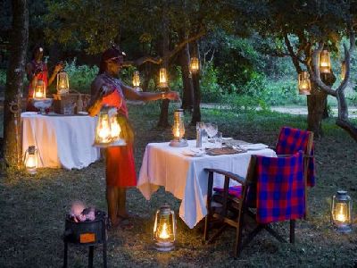 Classic safari interiors illuminated by soft lantern light open up onto majestic African landscapes. Each suite offers an en suite bathroom with stone shower, flagstone floors, soft lighting and separate w.c. in the luxury tents. Spacious private verandas provide a shady viewpoint onto the magnificent grasslands or the wooded banks of the Sabaringo River and the passing wildlife (luxury tents only). Hammocks strung in the grounds or around the gracious swimming pool invite you for an afternoon nap.Directions To Kichwa Tembo Tented Camp