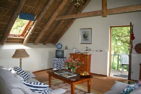 The suites are delightfully furnished in traditional style creating a lived in elegance, and include tea and coffee making facilities, a well stocked bar fridge and satellite television. Each suite has a spacious sitting room and a bedroom with en suite bathroom. One suite has a traditional reed ceiling while the second is under open thatch.Directions To Kleinfontein Farm