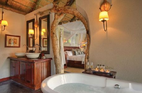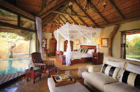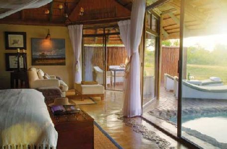 Two game drives daily with Big 5 game viewing, optional walking safaris, main lodge swimming pool, as well as private rock plunge pools in each suite, gym, massage sala with an array of treatments, extensive library with Internet facilities and Africana literature, traditional Shangaan boma, helicopter flights, trips to traditional cultural village, boma dinners & bush breakfasts, well stocked curio shop, exclusive wedding packages available. Rates on requestSpecials