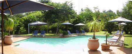 We rented a self-catering lodge (Dec'07) with two bedrooms plus an extra bed in the hallway for our three year old. The lodge was very nice, clean and spacious. Reasonably priced. The main building is luxurious, staff very friendly and accomodating. Nice pool with great views, tons of flowers, lush green parklike grounds. The breakfast on the terrace is well worth the price (R 70 p.p). We will come again. Note: access is 4 km off the