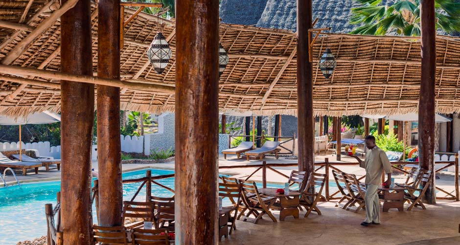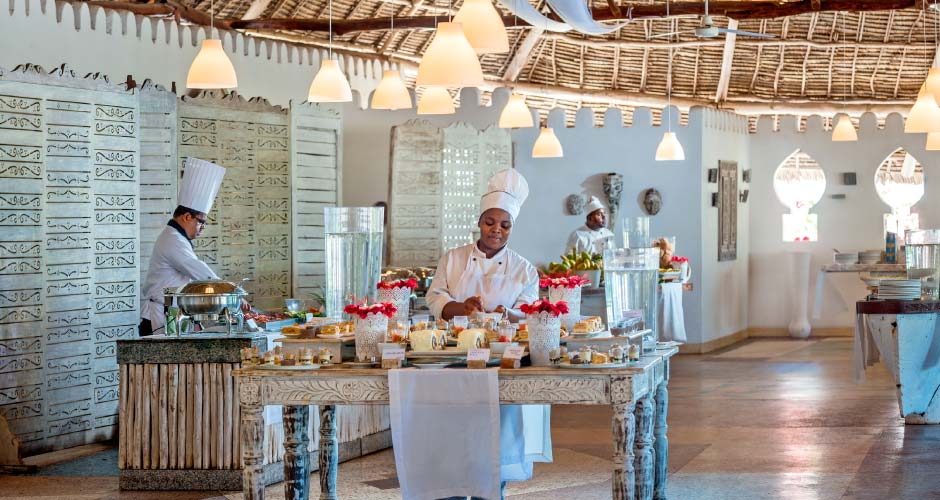 - Snacks, soft drinks, fruit juices, tea, coffee, mineral water, local beer, house wine served at the Hibiscus Pool bar from 10:00 am to 12:00 am and at the Upepo Beach Bar from 10:00 am to 6:00 pm.
