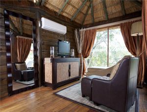 Standing high on the banks of the slow, brown Rufiji River, with glorious views down to the plunging torrents of Stiegler's Gorge, the Mivumo River Lodge offers just twelve luxurious rooms, each of which is housed in a timbered chalet with private viewing deck and plunge pool. Traditionally thatched, with high vaulted ceilings and picture windows, each room features an engaging mix of classic safari antiques and ultra-modern leather and rattan styled furniture. Softly lit and breeze-cooled, the lodge offers the ultimate escape to one of the world's last undiscovered wilderness frontiers.