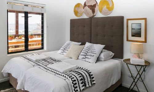 The Lookout has one bedroom with a queen bed, an easy access loft with a single, and a foldout double in the lounge.