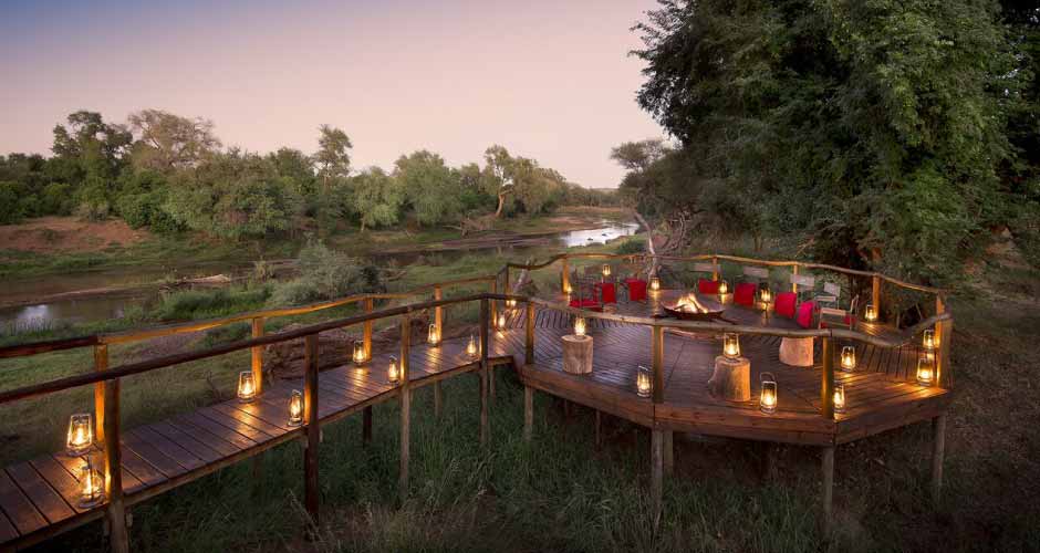 Pafuri Luxury Tented Camp is situated in the Makuleke Contract Park in the north of the Kruger National Park. This comfortable luxury safari accommodation stretches along the Luvuvhu River on raised wooden walkways. The camp has 19 designer tents with en-suite bathrooms including indoor and outdoor showers. There are seven ‘family tents’ that sleep families of four. All the tents offer gorgeous views over the Luvuvhu River.