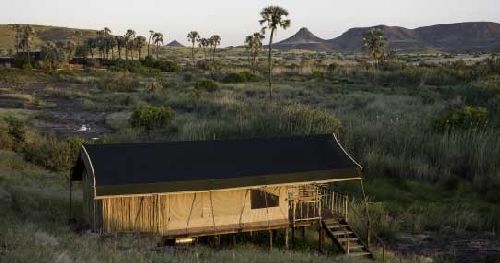 The Palmwag Concession is a 450,000 hectare conservancy in Damaraland in the Kunene Region of north-west Namibia. Considering the proximity of the concession to the Skeleton Coast Park and true Namib Desert, this area is home to a rich diversity of wildlife. Early morning fog generated by the icy Benguela Current in the Atlantic Ocean meeting the warm desert air of the Skeleton Coast drifts inland over the Namib Desert - providing precious water to the flora and fauna in this incredibly harsh environment. Adaptation to the desert environment is the miracle of all that survives here in the Palmwag Concession. The Etendeka Mountains dominate the scenery - impressive flat-topped outcrops coloured ochre-brown. Dry river-courses like the Uniab River cut through the landscape and occasionally fill with water. The terrain is rocky but often covered with fine golden grasses and interspersed with large Euphorbia damarana bushes, which are endemic to the area. Other fascinating plants in the Palmwag Concession include the odd-shaped bottle tree, shepherd's trees, ancient leadwoods, salvadora bushes and unique welwitschias. The Palmwag Concession's freshwater springs support healthy populations of arid-adapted wildlife. Good numbers of Hartmann's mountain zebra, southern giraffe, gemsbok (oryx), springbok, kudu, dwarf antelope (such as steenbok and klipspringer), scrub hare, comical meerkats (suricates), inquisitive ground squirrels, black-backed jackal and small spotted genet can be seen. A major drawcard to the region is that the Palmwag Concession supports the largest free-roaming population of desert-adapted black rhino in Africa, as well as a healthy number of desert-adapted elephants. The Palmwag Concession also holds the core of the rarely seen desert-adapted lion population of north-west Namibia. Cheetah and leopard also sometimes seen in this area. Birding enthusiasts are sure to enjoy the diverse avifauna found in the Palmwag Concession. Raptors include Greater Kestrel, Lanner Falcon and Booted Eagles, spotted in the sky or perching on a lonely shepherd's tree. Out on drives, it is possible to see Namaqua Sandgrouse, Burchell's Courser, the colourful Bokmakierie, Grey-backed Sparrowlark, Monteiro's Hornbill and White-backed Mousebird. Other regular endemics include Rüppell's Korhaan, Benguela Long-billed Lark and possibly Herero Chat with some focused searching. Verreauxs' Eagle is often sighted around rocky hillsides.Palmwag Lodge Namibia Accommodation