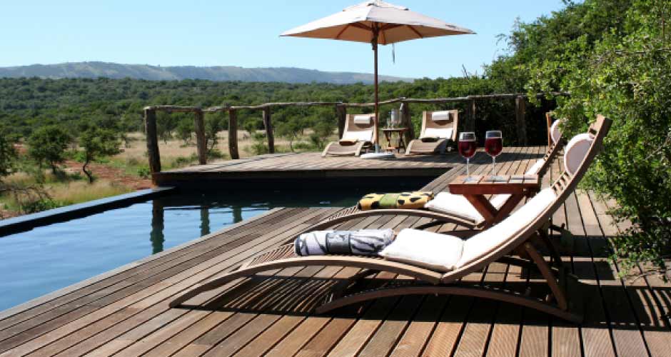 Feel one with nature in your own private glass enclosed chalet, as you watch the South African sun bid you goodnight over the distant hills. Complete relaxation is yours as you gaze out from your wooden deck, cool down in your private plunge pool or take a refreshing evening shower surrounded by the African bushveld. A relaxed meal under the starlit sky will provide a sumptuous close to each day.