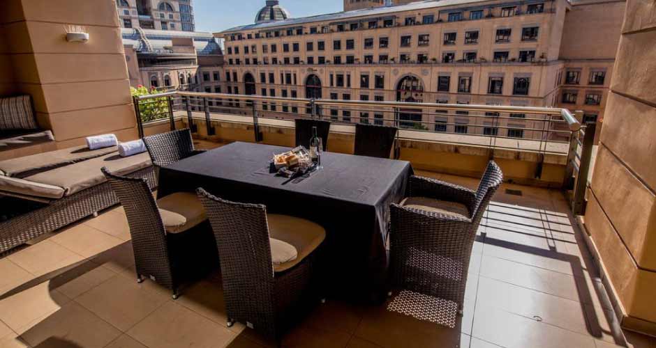 Overlooking Nelson Mandela Square, with all its restaurants, lifestyle options and the adjacent Sandton City Mall, Legacy Corner Mall and the Michelangelo Towers Mall.