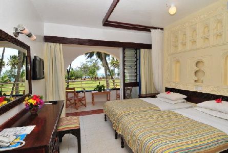 Reef Hotel - Accommodation Accommodation at the Reef Hotel varies from: -15 Superior Rooms facing the ocean -23 Garden Wing Rooms facing the garden and the pool. -96 Standard Rooms Reef Hotel - Amenities - Divan (Superior Rooms Only) - Bathroom with bath and shower - Air conditioning & Fan - TV/Video - Telephone - Safe - Mini fridge (Superior Rooms Only) - Large balcony with table and chairs Reef Hotel - Facilities - A choice of fine Restaurants & Dining areas to cater for all gastronomic tastes - 5 Bars -Reception Karibuni Bar, Pool Bar, Tanga Bar, Lounge Bar and Beach Bar - Laundry - Fresh Water Swimming Pools - Health & Wellness Centre -Massages, Hair Dressing - Children Club - 5 state-of-the-art conference venues - Shopping Arcade Reef Hotel - Sports Facilities 5 star diving centre, Deep Sea Fishing, Snorkeling, Sailing, Kite buffing, Kayaking, Windsurfing, Dhow trips, Horse riding, Mini golf, French bowls, Snooker, Table tennis, Lawn Tennis For entertainment while at Reef Hotel, guests can enjoy live tropical bands, traditional African dances, magic shows and acrobats in the evening.Reef Hotel Reviews