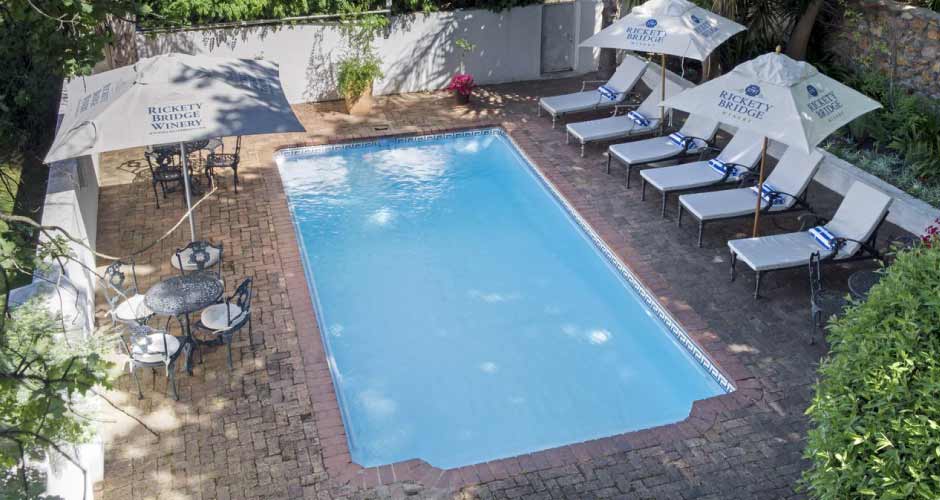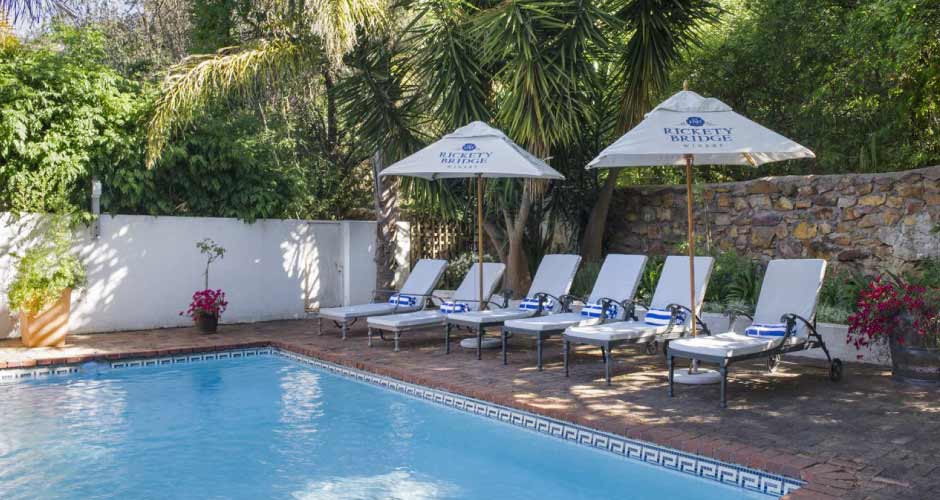 Rickety Bridge Wine Estate offers luxurious accommodation on a Franschhoek wine estate, less than 3 kilometres from the centre of the quaint Franschhoek town.