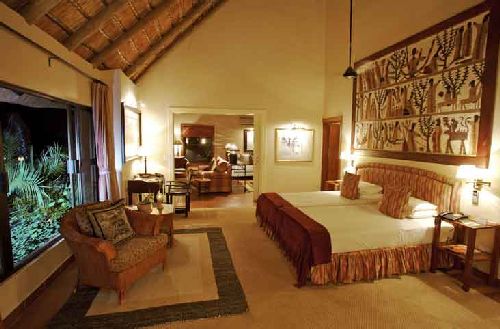 Out on a approx 4 hour game drive from 15h30 or 16h00. Return after a period of night driving where the nocturnal species are searched for by spotlight. These drives normally carry 6 to 8 passengers and are in open Land Rover type vehicles. The driver is an experienced guide who will make the drive more interesting. A tracker sits in front and follows the animals, often off road to secure sightings which are often really close and clear. Early next morning at dawn its up, coffee and rusks and out on a game drive again for about 4 hours returning to breakfast. After breakfast there is an opportunity to go on a guided walk in the bush with an armed ranger. This usually focuses on the tracks, insects, birds and the smaller animals. Alternatively relax at the Lodge. Many have a lovely outlook into the bush, possibly a water-hole at which a variety of animals visit during the day. Lunch and then the cycle repeats with the afternoon safari game drive. Some of the venues dine in open air bomas. Guests sit at tables around a fire in the enclosure. The accommodation is generally rustic, three to five star. There are some super luxury venues too.Sable Camp - Kruger National Park Kruger Accommodation