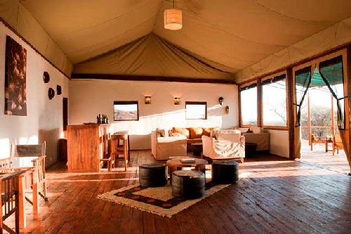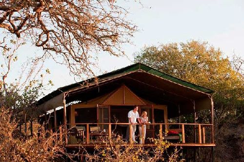 Accommodation is offered in twelve double tents which are scattered around the main kopje. Each tent has en-suite facilities with hot and cold running water and a personal tent attendant. Private verandahs with comfortable furnishings extend in front of each unit.The dining area, lounge and library are housed in the main area, which affords spectacular views from its wooden deck and the adjacent kopje. The camp uses inverted electrical energy.Directions To Sanctuary Kusini