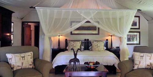 The beautifully appointed suites nestle amongst indigenous bush and trees that provide privacy, quiet and a haven for birds. The epitome of elegance and comfort, the décor is a blend of colonial and classic with hand crafted furniture, fine linen and beautiful artwork. Three Executive and four Luxury Suites offer a unique 'Out of Africa' experience with canvas roofs above draped ceilings set on permanent structures. All have magnificent bathrooms and decks looking onto waterholes in the bush. In addition, the larger Executive Suites have plunge pools. The thatched Savanna Suite is tailor-made for families, with two en-suite bedrooms on either side of a spacious, elegant lounge and large covered patio. The bedroom suites with their individual bathrooms, can also be booked separately, in which case they would not include the lounge, private vehicle and guides which are part of the Savanna Suite package.Directions To Savanna Private Game Reserve
