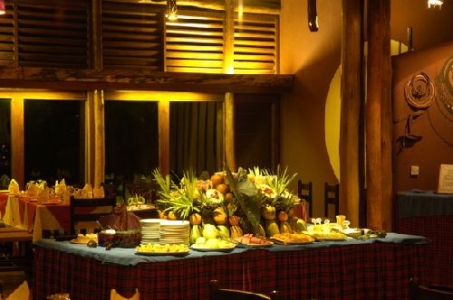 The water hole was a little disappointing - there were a few buffalo and deer there - but that was it. Some people in our party asked for a wake up during the night if a lion appeared - no lion appeared! The place is very rustic and tranquil and a great place to unwind after our flight from UK - bottled Tusker was great and smoking is allowed on the upsatirs part of the building - overlooking the water hole. The food was very good - as other revies have said - the main course is cooked fresh to order - 1 slight criticism was the 'crunchiness' of the cooked vegetables!! Fantastic view os Mount Kenya in the morning - no clouds - just an iconic mountain view!