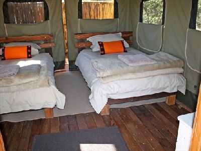 Each tent lodge has a wooden entrance door, adjustable canvas flaps for windows, and mesh to keep insects. All tents have a thatch roof and porch, designed to cool the tents in summer. Tents are equipped with 2 x 3/4 beds, solar lighting, all bedding, and towels, private shower, handbasin and flush toilet. In summer, mosquito nets are fitted above the beds. Swimming pool towels are provided in camp. - The general Shindzela tented camp area encompasses a swimming pool, dining tent, kitchen, staff tents and a central African fireplace – a perfect spot to relive safari experiences around the fire.Directions To Shindzela Tented Safari Camp