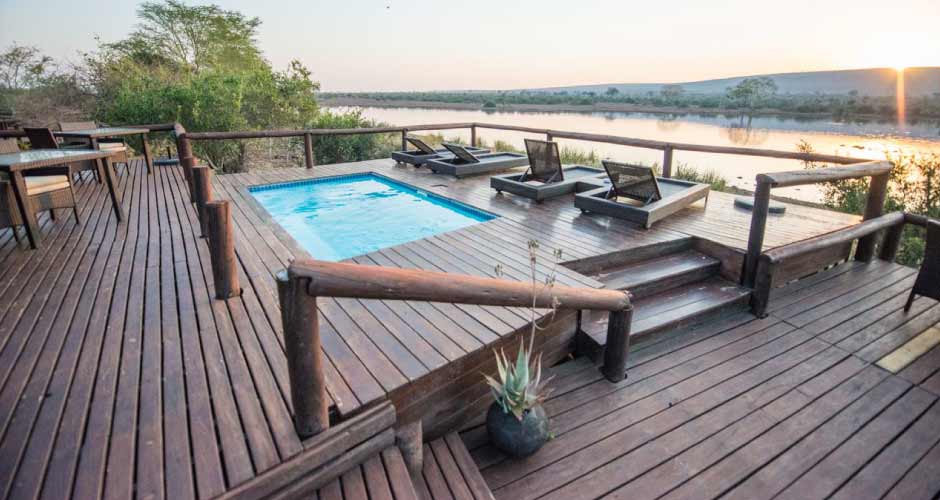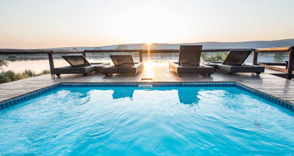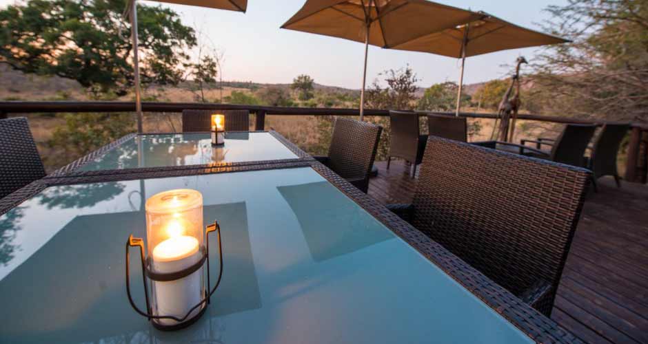 The Kruger Park game lodge boasts with some of the most rewarding game-viewing on the continent, top-quality service, kids' programmes, lounge area with plasma TV, a library, intimate bar, wine cellar, compact fitness centre, sparkling swimming pool and 22 individual luxurious chalets, offering game reserve accommodation, each completed in modern African style with a fireplace, bath and romantic outdoor shower, lounging area and a private game-viewing deck, perfect for watching the sun set on the horizon.