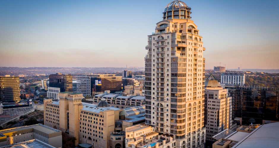 Rising an impressive 144 m above the Sandton skyline, this all-suite hotel has luxuriously decorated suites with panoramic city views. Each of the spa...
