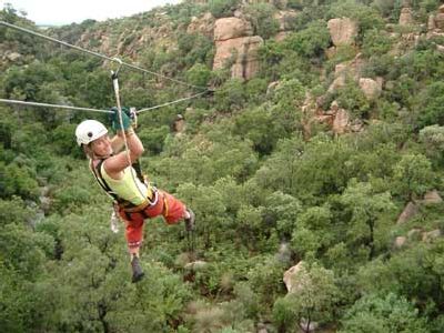Sport Facilities These include tennis courts, swimming pool, heated splash pool, sauna, volleyball, squash, snooker, pool table, table tennis, children's play park, trampoline, darts, mountain bikes, and golf by arrangement. Mountain Walks Watch the sun rise or set over the magnificent Magaliesberg range! Climb down into the kloof for a picnic breakfast, lunch by the river or just swim in the crystal clear mountain pools. Our guide is a qualified professional who has an extensive knowledge of local flora and fauna. Don't miss out on this unique experience. Other walks and valley meanders can also be enjoyed along well-marked trails. Sparkling Mini Golf This exciting 18 hole putting course promises to give you the most challenging putt you'll ever have! The Magaliesberg Canopy Tour Enjoy the magnificence of the 2400 million year old Magaliesberg Mountains while sliding across the top of Ysterhout Kloof from 11 platforms joined by 10 slides of up to 140 metres long, and in places, more than 30 metres above the stream below. Trained guides accompany each tour to ensure the safety of participants, while discussing interesting facts about the history of the range and its protected Fauna and Flora. Day Trips Guided day trips can be arranged to a nearby lion park, game drives, Dutch cheese farm, Paul Kruger museum and other places of interest. Clay Pigeon Shooting Try your hand at clay pigeon shooting. We supply all the necessary equipment and assistance where required. This is a great team-building exercise. Horse Trails We offer guided trails for up to three hours along wooded streams and mountain trails, as well as pony rides for the young ones. Action Cricket This unique pitch is floodlit and has a grass fielding area. Very competitive and lots of fun. Paintball War Games The course for this exhilarating game is next to the Krom River, between the trees and bamboo bush. Tuition, guns, ammunition, and protective gear is supplied.General Policies & Disclaimers