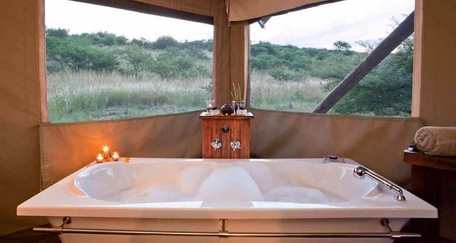Whether Springbok Lodge is your intended destination or the base from which to explore the surrounding Battlefields and Drakensberg you will be assured an exceptional stay and safari experience. Each of the luxury tents have their own viewing deck, open plan bathroom with a double basin, indoor bath tub with hand shower and a private open air outdoor shower.