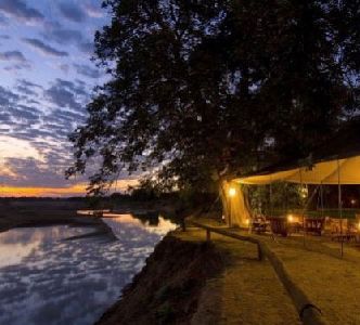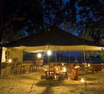This remote and small camp lies within the National Park and enjoys a stunning location on a sweeping bend of the Luangwa River. It was Robin's first camp and has remained a favorite of many safari lovers over the years. A grove of mahogany trees shade the "suite" tents - a tent with a verhanda, dressing room and large open bathroom. The waterhole that runs in front of the tents, is highly productive and the siestas can be spent watching and photographing from the bed The main area is a large canvas marquee placed between two mahogany trees. The view from sitting area, down the Luangwa River, is 60 km to the hills. Dinner is served on the platform, under the stars, again with a view of both the river and the waterhole.Tena Tena Safari Camp - Zambia Luangwa National Park Accommodation