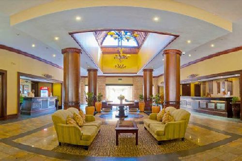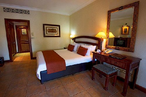 Accomodation at The Kingdom Hotel The Kingdom Hotel has 294 rooms. These are situated in separate two and three storey units, built around the hotel’s artificial lake. Of these rooms, 102 have twin beds, 112 have king size beds, 34 have king size beds and bunk beds, 40 have twin beds and bunk beds, 4 are Standard Suites with king size beds and 2 are twin bedded paraplegic rooms with interleading bedrooms. These disability-friendly rooms have ramps for easy wheelchair access. The hotel also has elevators and friendly helpful staff to assist guests with special needs. The rooms are crisp, bright and quite spacious and decorated to an African theme. They are all equipped with modern facilities such as air-conditioners, overhead fans, radios and satellite televisions, telephones with voicemail functions, data points and multiple adapters, hairdryers, safes and a coffee and tea station. All the rooms have balconies and a selection overlooks The Kingdom’s lake, while others look out onto the property’s green vegetation. Good news for families is that many of the rooms have extra bunk beds for the kids. And if you’re after even more space and luxury, the 4 suites each have a separate lounge and extra bedroom, as well as a mini bar. Dining at the Kingdom Hotel The Kingdom Hotel is one place where you never need to go hungry. The resort offers many options for all tastes. The hotel has its own buffet restaurant, White Waters, which seats a whopping 370 people. It overlooks the Pool Island and offers hearty breakfasts and dinners with a selection of creative dishes such as Mopani worms. They also have after-dinner floor show of traditional music and dancing. We were astonished to see all the different foods on offer for breakfast. Most of the hotels we visited have limited supplies of fresh fruit and other difficult to acquire products, but at The Kingdom we were absolutely spoilt for choice. They had fresh fruits, including melon, oranges, watermelon, pears, peaches (both in fruit and salad form), cold meats, cheeses and biscuits, fabulous pastries, and of course – everything your heart could desire in a cooked breakfast (pancakes, omelettes, bacon, egg, sausages etc!). They also had four different kinds of juices. The resort has an entertainment area called The Enclosure which hosts a large selection of restaurants and bars. Their Spur steakhouse, aptly named the Thundercloud Spur, seats 325 people and is ideal for families. Their burgers are really tasty! For the pizza and pasta lovers there’s Panarotti’s – a great Italian Trattoria-style restaurant with big hearty dishes. We opted for the ‘bottomless pizza’ special and were surprised by the humungous servings on offer! Panarotti’s also hosts a coffee shop with good speciality coffees and decadent pastries. A cool thing about Panarotti’s and Spur is that guests can order from both simultaneously – which is great if one of you feels like ordering a steak, while someone else would prefer pasta. There’s also a food court for light lunches and snacks such as sandwiches, hotdogs and cooldrinks. Their many bars include Quartermains - a stylish Edwardian-themed bar, Wild Thing – an Action bar with live entertainment and live sports broadcasts, The Rapid Pool Bar – on and island surrounded by a rapids water feature, serving light snacks, and The Pit – the casino bar. Amenities at the Kingdom Hotel • Four swimming pools including a toddler's pool • Pool Bar • Entertainment complex • Casino with blackjack, roulette and slot machines • A supervised crèche and children's play area • Bank - Barclays bank with an Auto Teller Machine • Shopping - Pharmacy and variety of up-market shops and curios • Action Centre • Internet cafe • Beauty Parlour - hairdresser, masseur and manicurist • Foreign exchange facilities • Open secure parking • Car hire and touring desk • Packed lunches • Hair dressing salon • Food court • 6 restaurants • Cafe offering a wide selection of sweets and ice creams • 4 bars • Business centre: photocopying, typing, facsimile, e-mail, Internet facilities Room facilities: Every standard room has the following: • Tea and coffee making facilities • Air conditioning and overhead fans • Radio and taped music • Satellite televisions • Direct dial telephones with voice-mail facility • Data points and multiple adapters in every room • Showers and baths • Shaving socket outlets • Hairdryers • Electronic safes In addition to the above, all the Suites have the following: • Separate lounge and bedroom • Mini-bar Activities: • 18-hole Championship golf course at The Elephant Hills Hotel • Africa spectacular (traditional dance show) • Canoeing • Zambezi river boarding • Bungi jumping • Flights over the falls by helicopter (6-seater), ultralight and microlight • Horse trails • Zambezi wine route • Bird watching trail • Morning cruises and sundowner canoe cruise • Game drives (including full day game drives to Hwange and night drives) • Walking safaris and tours of nature sanctuary • Elephant back safaris • Victoria Falls Steam Safari Express.General Policies & Disclaimers
