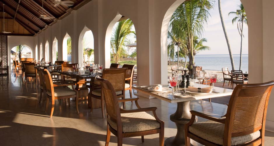 The Dining Room. Begin the day in the most leisurely way with breakfast in The Dining Room, set at the heart of the hotel with spectacular views over the beach and ocean. Linger over lunch that offers a menu of tempting, light options. As night falls, savour a menu of tantalising cuisine that reflects the spice and culture which Zanzibar is so famous for, combining fresh foods and meats with Omani and African flavours.