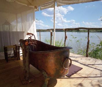 The Retreat offers four different styles of accommodation. Twelve spaciously 100–220 m², more than six meter high tented suites under palm thatched roofs with expansive distance between each suite have been constructed in three independent units to correspond with the surrounding habitat, whilst guaranteeing privacy and romance. The tents are protected by two layers - a strong mosquito net as an inner wall and heavy duty canvas on the outer side. If guests wish to be closer to nature, all tents can be fully opened to the sounds, breeze and full view of the environment. Each suite has its own private outdoor deck with a stunning signature outdoor antique copper, brass or silver bathtub. Ethnic elements, bespoke furnishings, African antiques, natural materials and precious stones have been blended to create a unique sense of comfort and natural luxury using principles of Feng Shui and the Five Elements in materials and interior design.Directions To The Retreat Selous