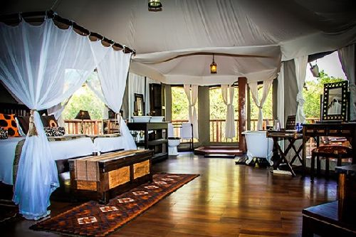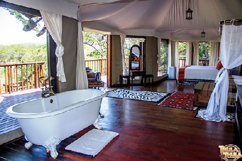 Safari Lodge Accommodation: - 8 luxury thatched chalets decorated in flavours of ethnic and colonial elegance. - The Suite Royale - for the most tranquil and romantic safari indulgence. - The Suite Imperiale - for ultimate luxury, space and comfort Facilities: - Central living area - Boma, viewing deck - Wine cellar - Swimming pool - The Marula Bar - Conference centre - Private lounge with bar and library. Tented Camp Accommodation - 8 luxury tents - 6 standard luxury tents Inc: 2 3/4 beds, ensuite bathroom with Victorian bath and outside shower, mosquito net, tea and coffee, fan, private veranda. - 2 family tents Inc: 2 3/4 beds for parents and 2 single beds, mosquito nets, teas and coffee, en suite bathroom with Victorian bath and shower, fan. - All beds equipped with electric blankets. Facilities: - Central living area with bar - Dining room - Lounges - Airconditioned lounge with TV/DSTV - Outside thatched bar - Boma - Swimming pool.Area Attractions