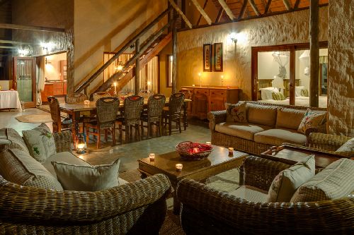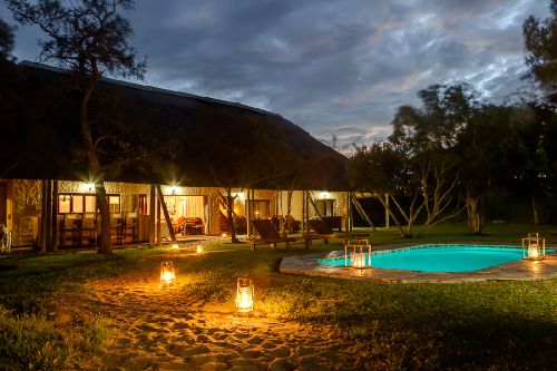 The private fulltime chef will tantalize your taste buds with delicious dishes prepared in the splendid fully equipped kitchen and can be enjoyed on the marvellous shaded patio or at the traditional open-air Boma while watching the awe-inspiring twinkling night sky. After an exhilarating day out in the bush, take a refreshing dip in the crystal clear pool or lounge under the gazebo with sundowners while absorbing the spectacular African sunsets.
