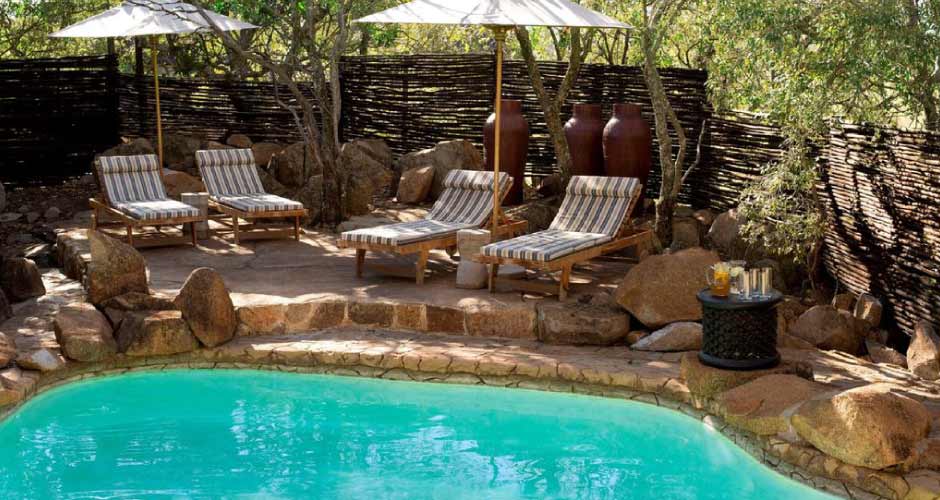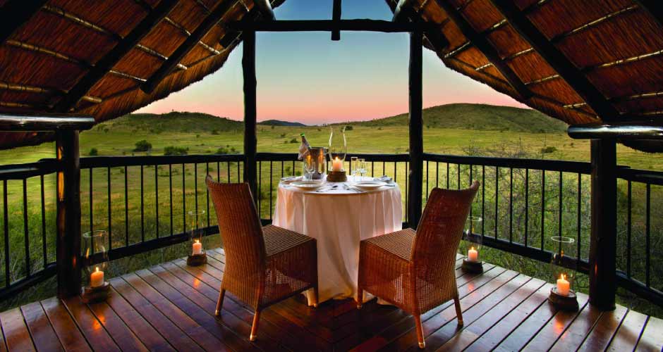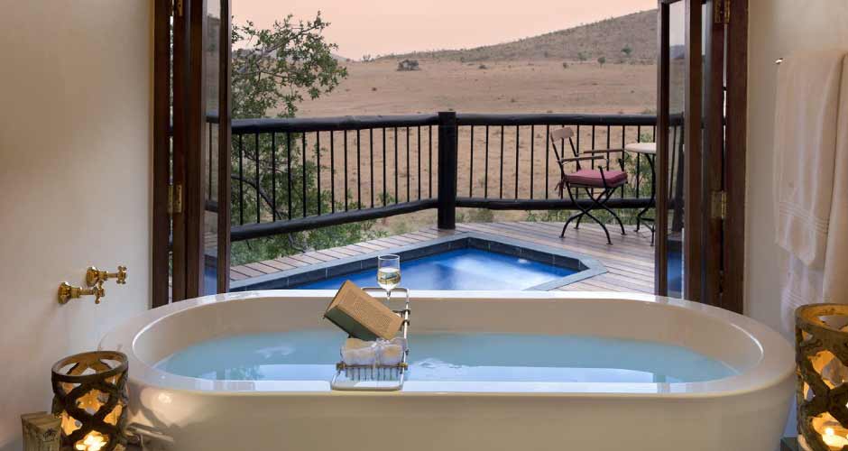 The luxurious Tshukudu Bush Lodge is situated on an elevated rocky outcrop with stunning views overlooking the natural surroundings. This intimate lodge offers just six luxury cottages and four suites, where attention to detail and personalized service is guaranteed. The 6 free standing luxury chalets are individually decorated. Leather sofas and crystal chandeliers provide a stylish aspect while a double bed and a sunken bath tub guarantee comfort and relaxation.