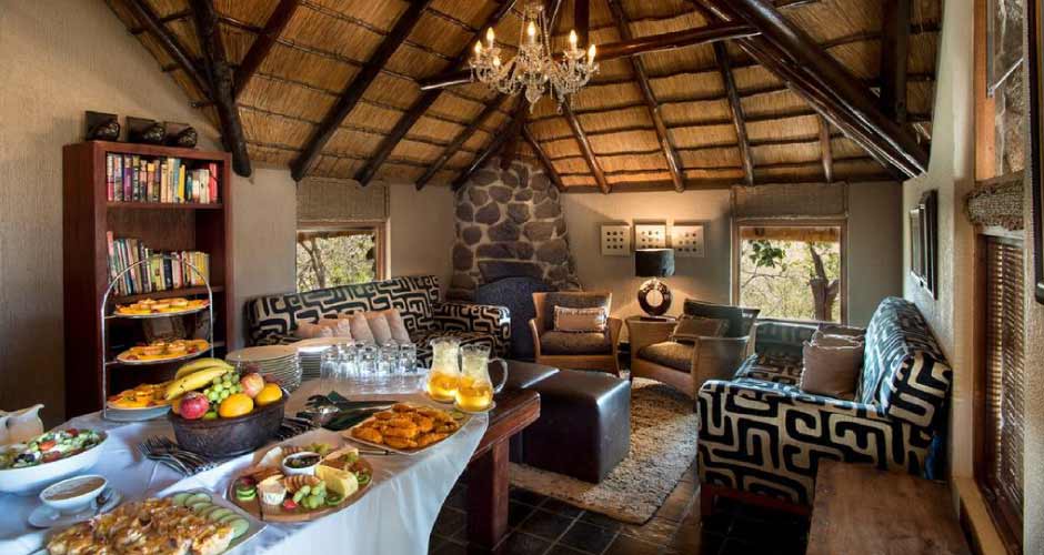 With six splendidly decorated and recently refurbished chalets to choose from, Tshukudu Bush Lodge is the ideal place to enjoy a serene, romantic weekend or fabulously indulgent getaway - just because you can. Chalets Sit on a beautiful banquette built into the rocks on the main patio while watching one Africa's famous sunsets. A double bed and chaise lounge provide you with ample comfort. The bathroom is decadently fitted with a sunken bath tub from which you can enjoy sweeping views of the park. Plush leather sofas, hanging glass crystal chandeliers and soft furnishings in vibrant colours complete the picture of the ultimate combination between the wild outdoors and world-class comfort.Directions To Tshukudu Bush Lodge
