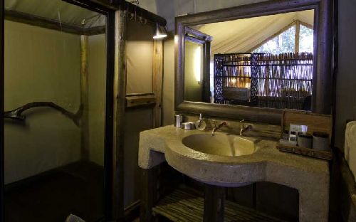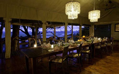 Each spacious safari tent is perched on a wooden deck overlooking the floodplain.